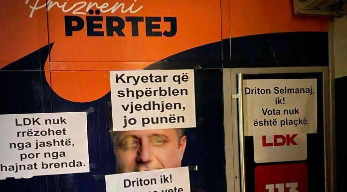 Aktivistë të LDK-së mbajnë aksion simbolik para zyrës së partisë në Prizren Një grup aktivistësh të Lidhjes Demokratike të Kosovës (LDK) kanë mbajtur këtë pasdite një aksion simbolik para zyrës së degës së kësaj partie në Prizren, ku kanë vendosur mbishkrime në hyrje të objektit për të shprehur pakënaqësinë e tyre ndaj zhvillimeve të fundit brenda partisë. Në emër të aktivistëve,...
