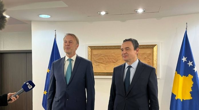 Kryeministri i Kosovës Albin Kurti në orët e para të mëngjesit të sotëm ka pritur në takim, ambasadorin e zyrës së Bashkimit Evropian në Kosovë, Aivo Orav Siç raporton Ekonomiaonline, pas takimit, Kurti dhe Orav janë deklaruar për media.