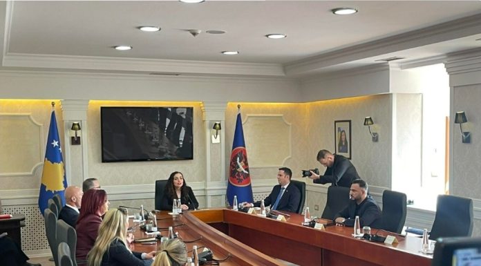 Pa liderin e Lëvizjes Vetëvendosje, presidentja e Kosovës, Vjosa Osmani ka nisur takimin me kryetarin e PDK-së, Bedri Hamza, atë të LDK-së, Lumir Abdixhiku dhe të AAK-së, Ramush Haradinaj. Takimi është konsultativ, për të diskutuar në lidhje me datën e zgjedhjeve, pasi mëngjesin e sotëm Osmani nxori dekretin për shpërndarjen e kuvendit.