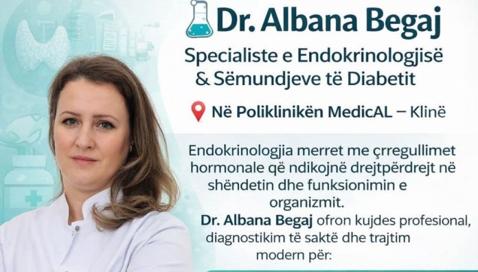 Dr. Albana Begaj đŸ‘©â€âš•ïžofron shĂ«rbime tĂ« specializuara tĂ« endokrinologjisĂ« nĂ« PoliklinikĂ«n MedicAL nĂ« KlinĂ«
