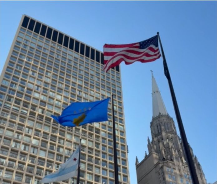 Për nder të 18-vjetorit të Pavarësisë së Kosovës, të premten në Chicago është bërë ngritja solemne e Flamurit të Kosovës përkrah flamurit të Shteteve të Bashkuara të Amerikës dhe atij të qytetit të Çikagos.