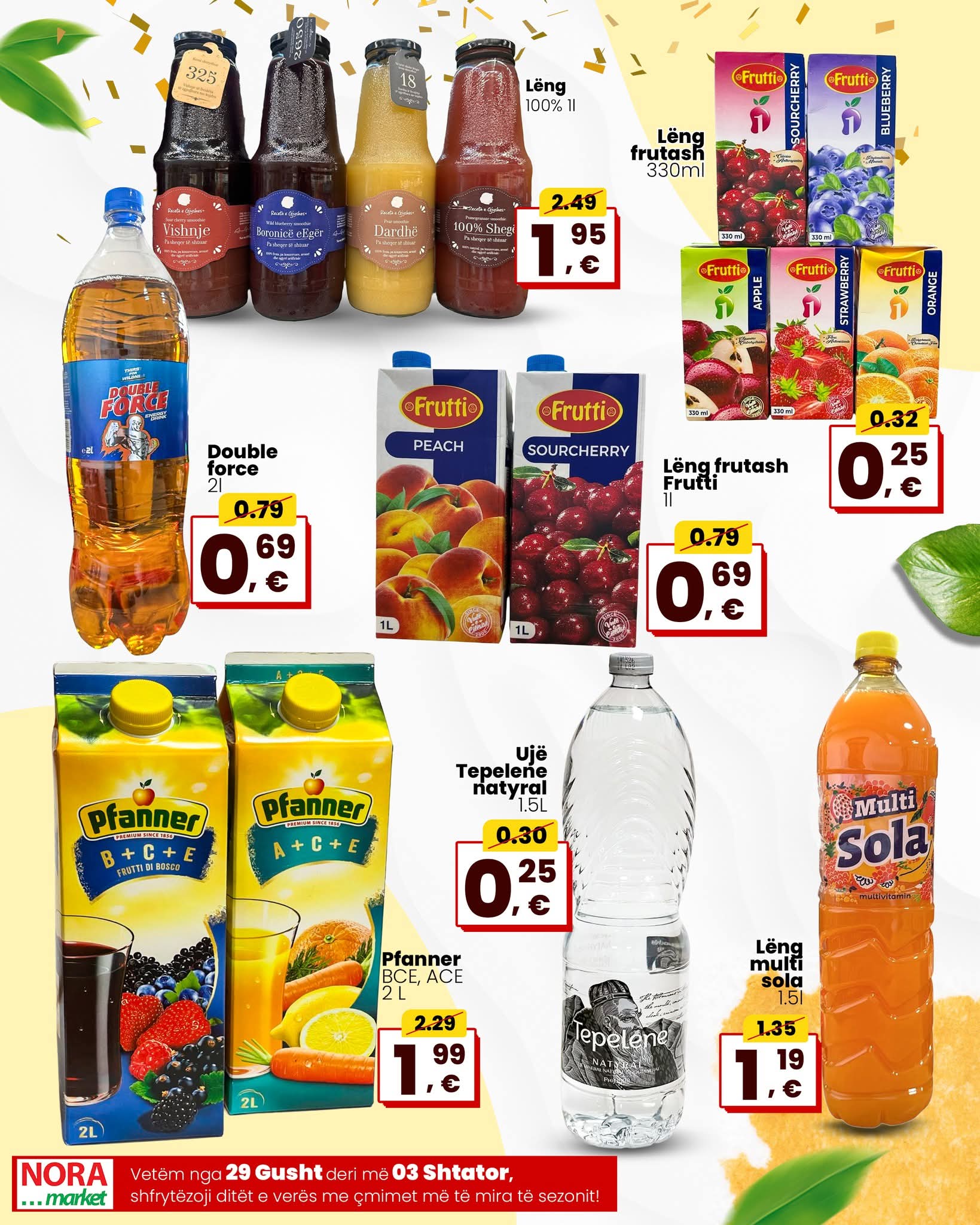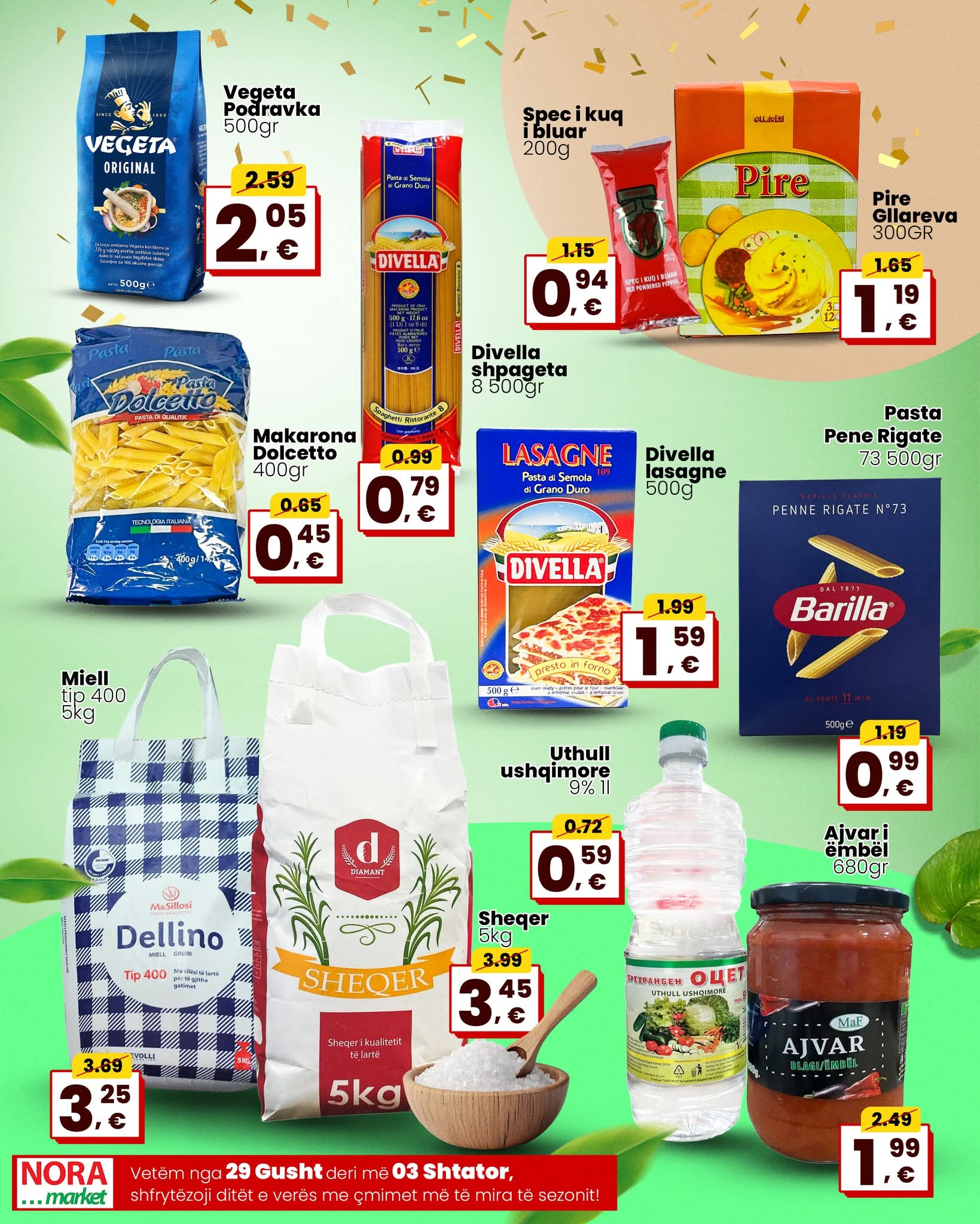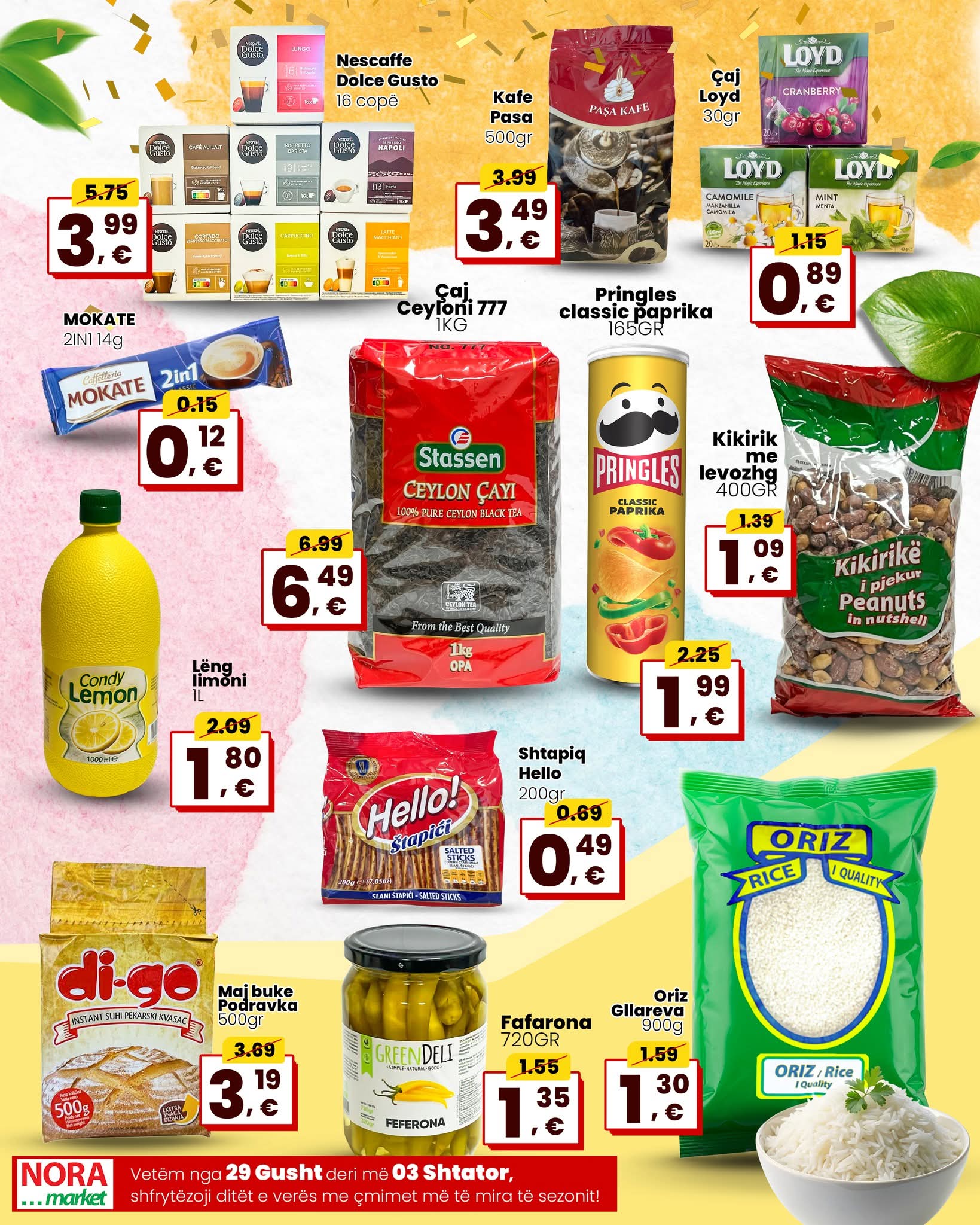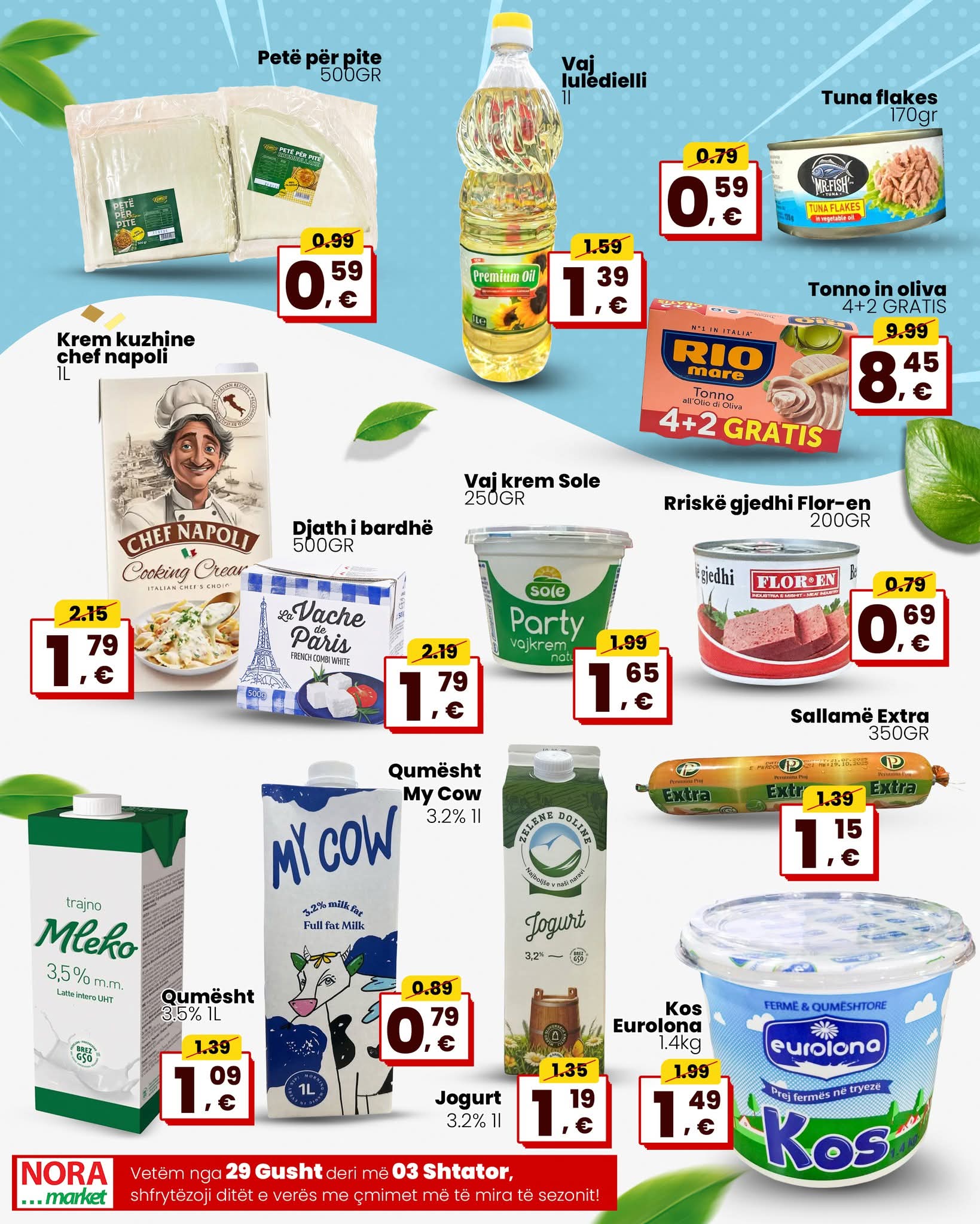 Nga 29 Gusht deri më 03 Shtator, në Nora Market ju pret një super ofertë verore në shumë produkte të përditshme – gjithçka që ju nevojitet, me çmime që nuk duhen humbur!