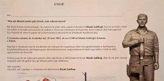 Në nderim të dëshmorit të lirisë Rizah Salihaj, më 20 tetor 2025, në ora 12:00, në fshatin Zabërgjë të Komunës së Klinës do të...