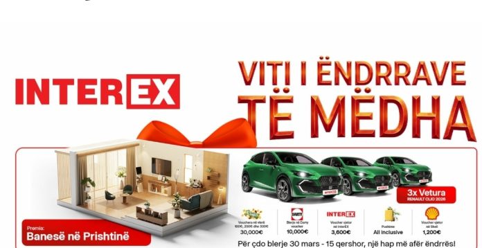 Në një kohë kur ëndrrat shpesh duken të largëta, Interex synon t’i sjellë ato më pranë përmes një prej kampanjave më të mëdha shpërblyese të këtij viti. Duke filluar nga 30 marsi, rrjeti i njohur i marketeve nis zyrtarisht “Vitin e Ëndrrave”, një lojë shpërblyese që ofron mundësi reale për fitime të mëdha për konsumatorët.