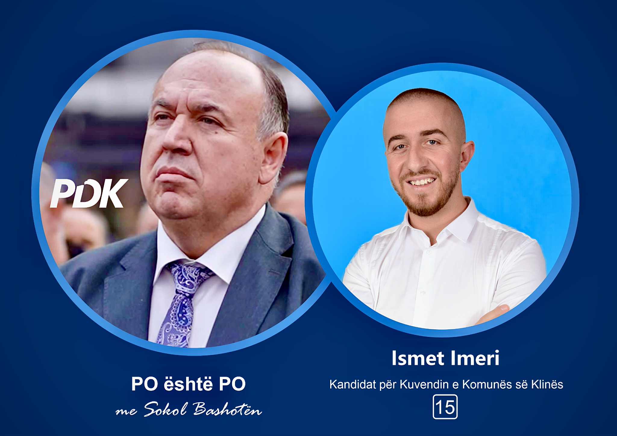 Unë jam Ismet Imeri, një i ri me vullnet, energji dhe vizion të qartë për të ardhmen e komunës sonë. Me kandidaturën time për anëtar të Kuvendit të Komunës së Klinës në mandatin e ardhshëm katërvjeçar, synoj të jem zëri i fuqishëm i rinisë së Klinës, duke përfaqësuar me dinjitet dhe vendosmëri interesat e kësaj kategorie që përbën motorin e zhvillimit të qytetit tonë.