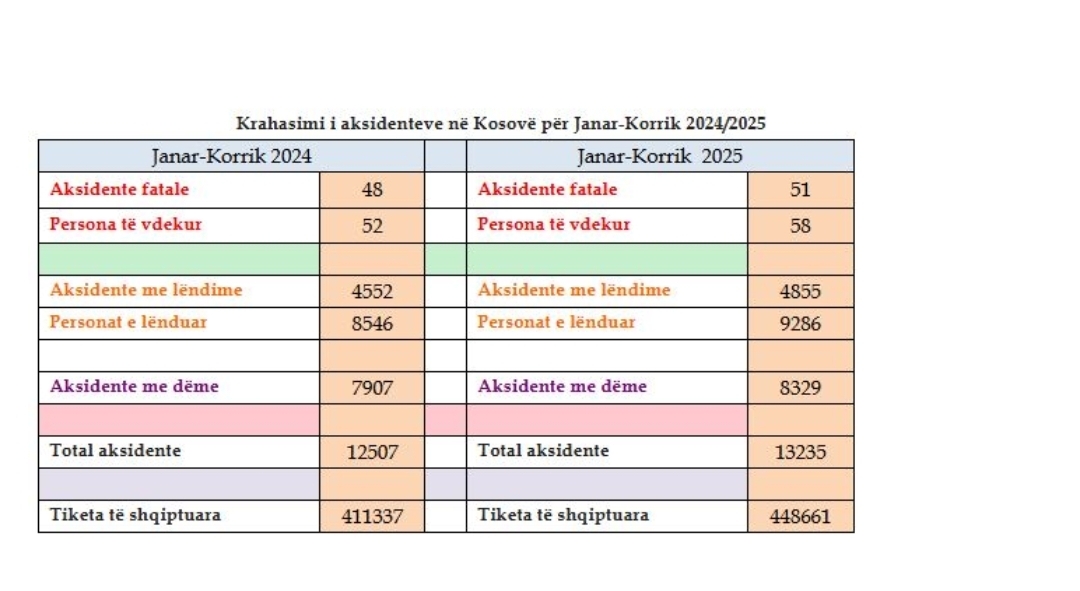 Po ashtu, është vërejtur një rritje në numrin e tiketave të shqiptuara nga Policia e Kosovës. Në 2025-a janë shqiptuar 448,661 tiketa, krahasuar me 411,337 në po të njëjtën periudhë të vitit të kaluar,
