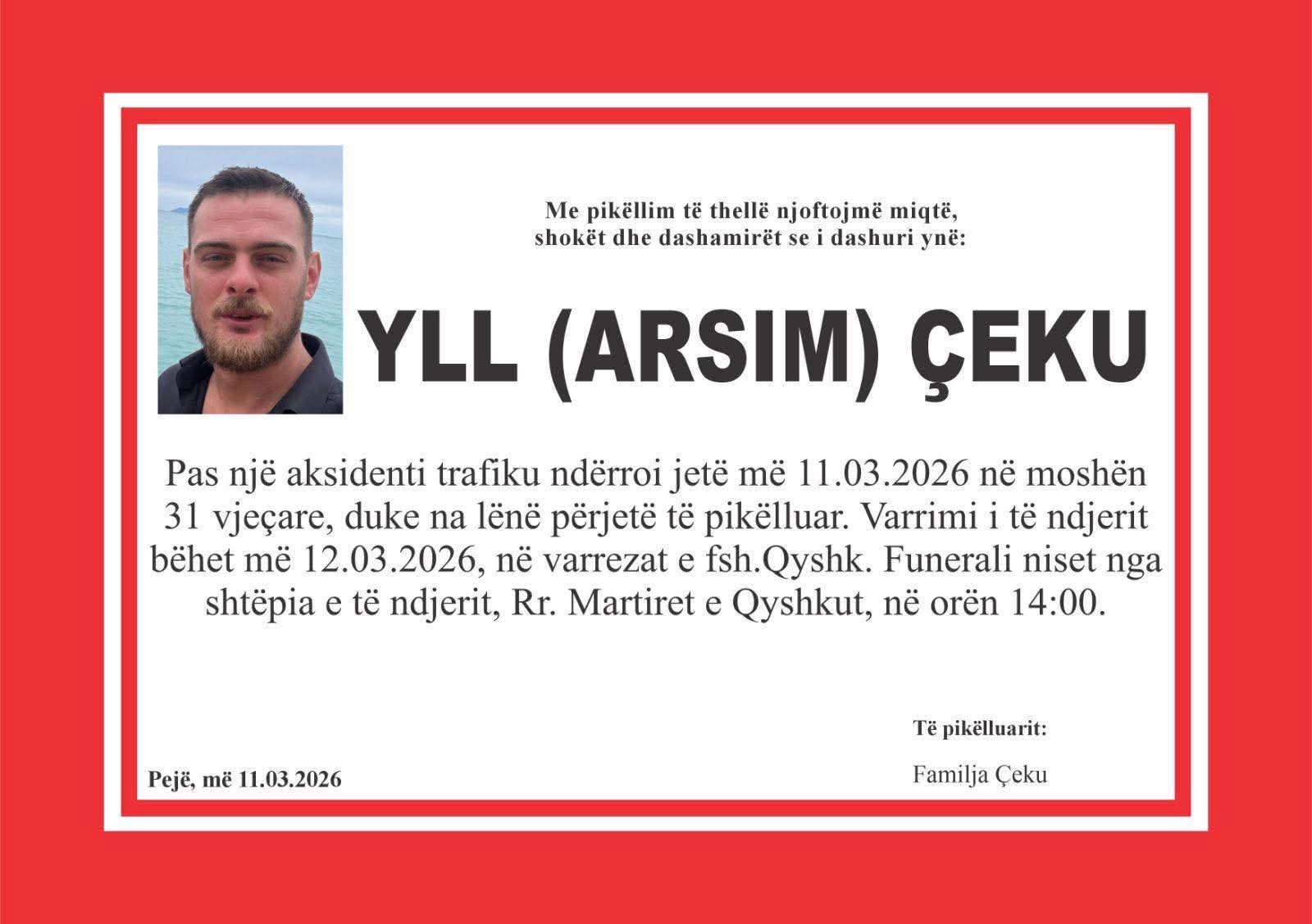 Ka ndërruar jetë i riu Yll Çeku nga fshati Qyshk i Pejës.