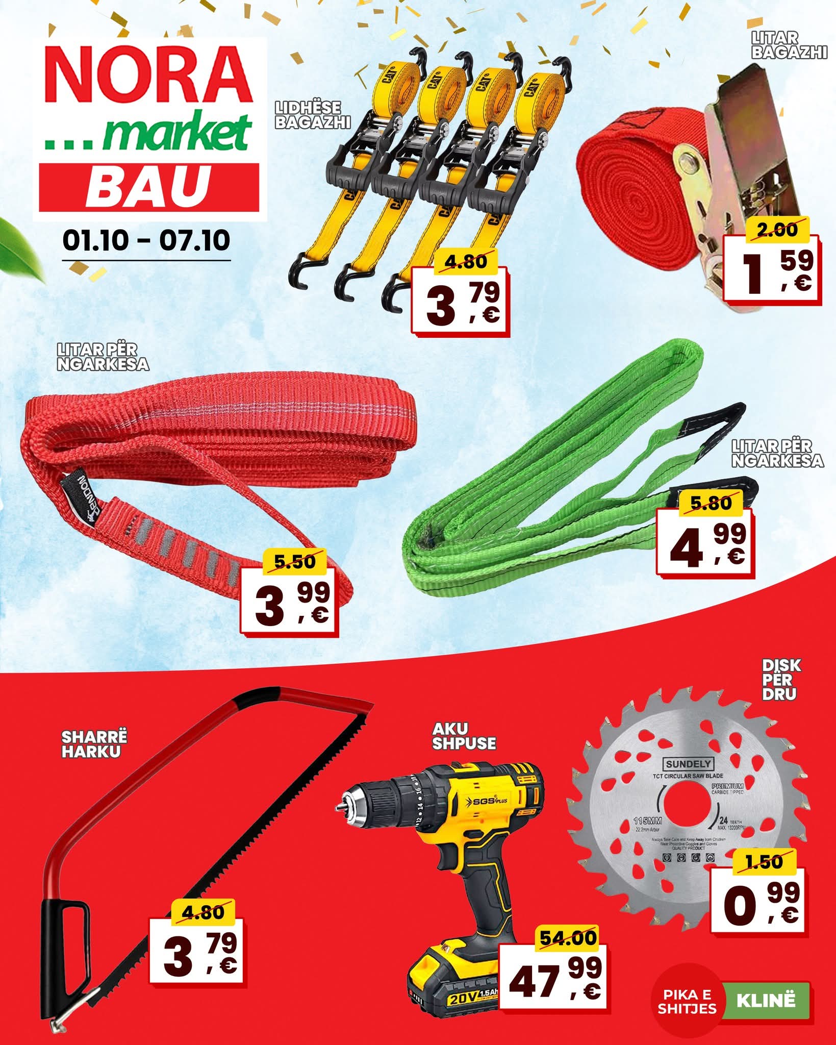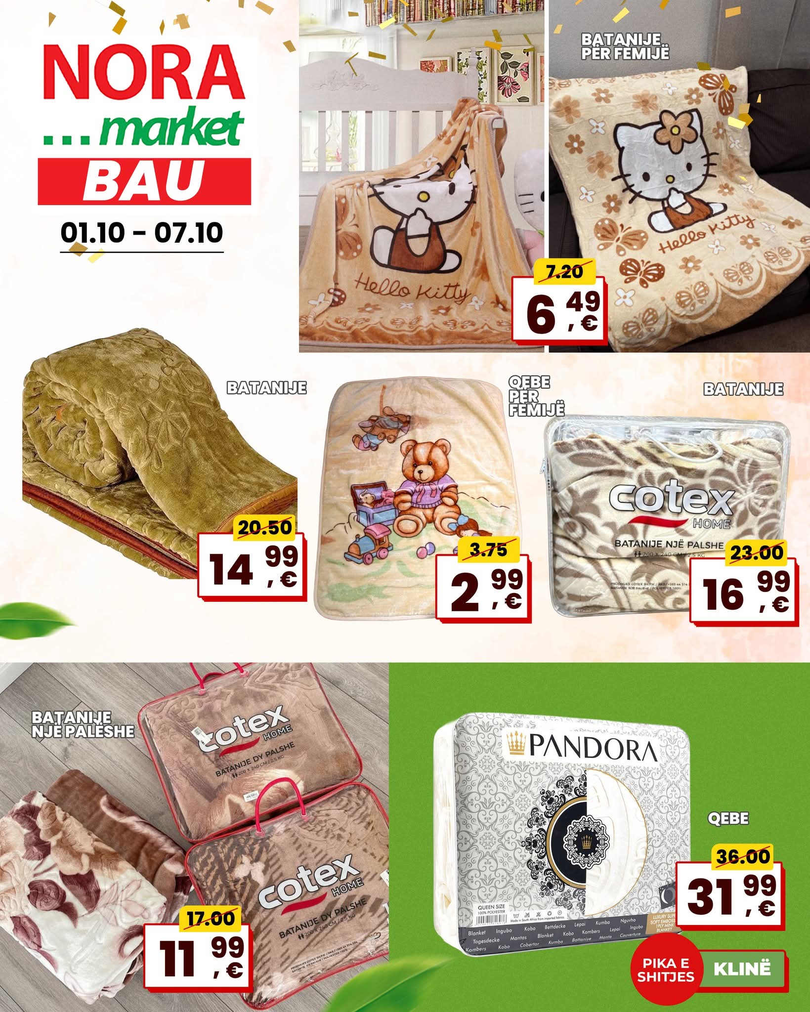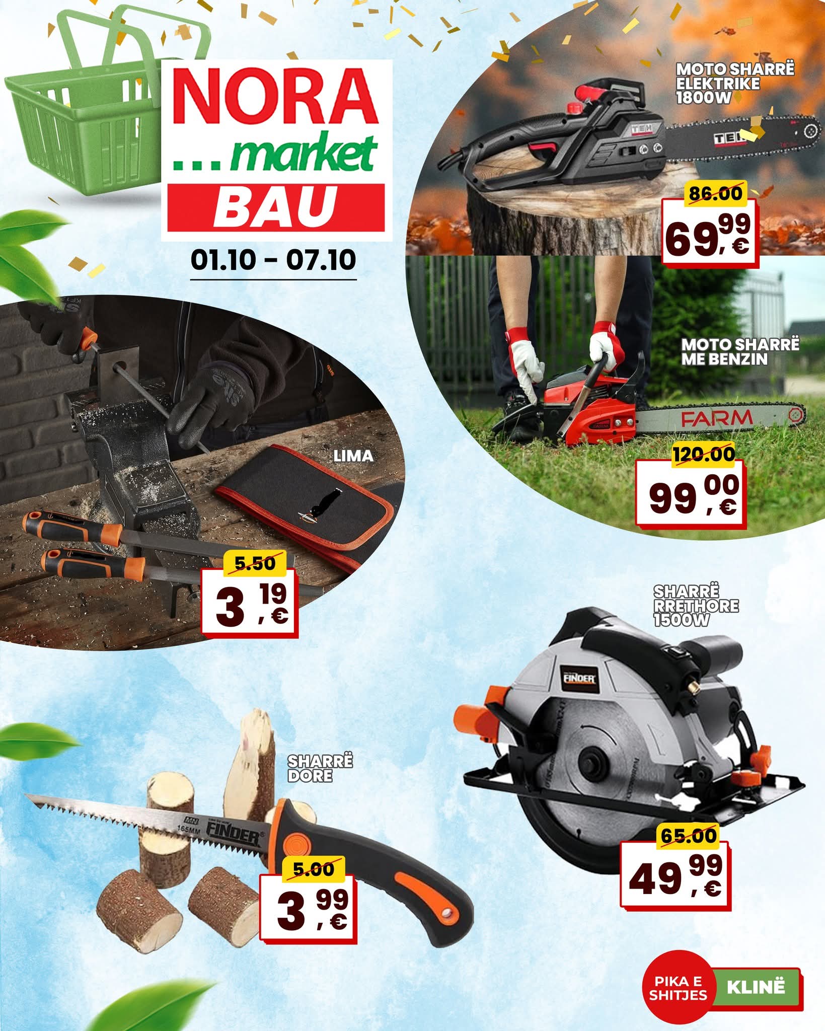 Nga 01 deri më 07 Tetor, në Nora Market BAU ju pret një super ofertë në artikujt më të nevojshëm për shtëpinë tuaj – gjithçka që ju duhet për komoditet dhe rregull, me çmime që nuk duhen humbur!