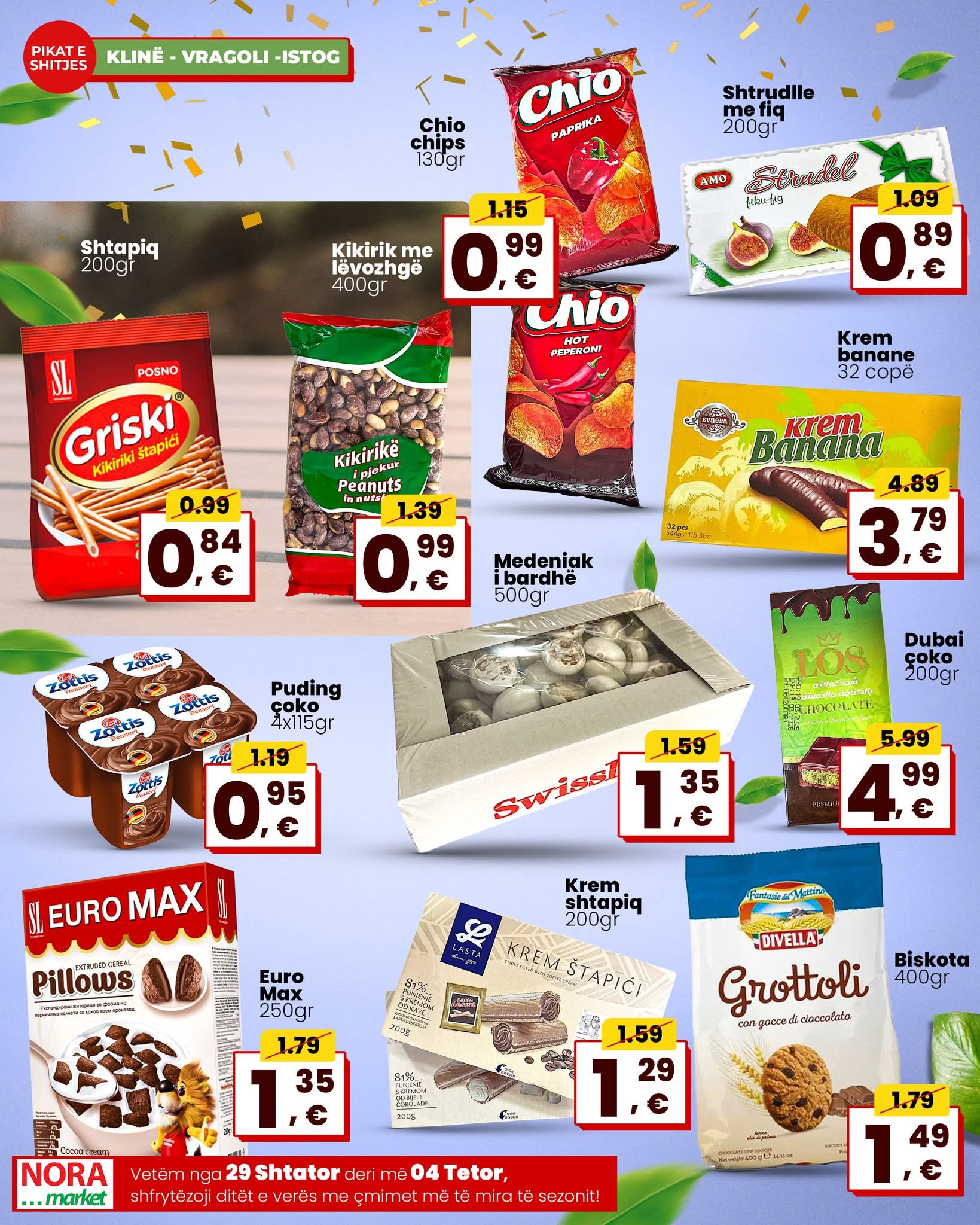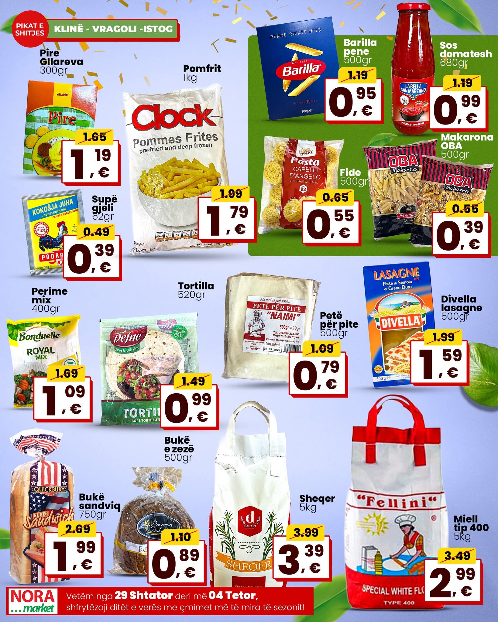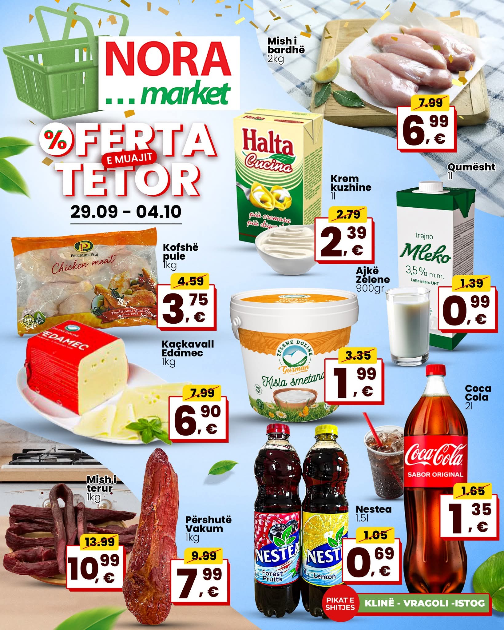 Nga 29 Shtator deri më 04 Tetor, në Nora Market ju pret një super ofertë vjeshtore në shumë produkte të përditshme – gjithçka që ju nevojitet, me çmime që nuk duhen humbur!
