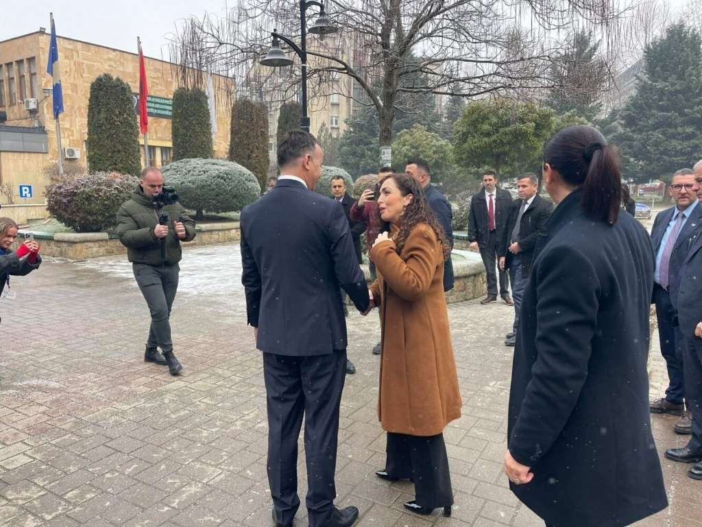 Presidentja Osmani shkon për ta uruar Pecin në Mitrovicë të Jugut, pritet me lule