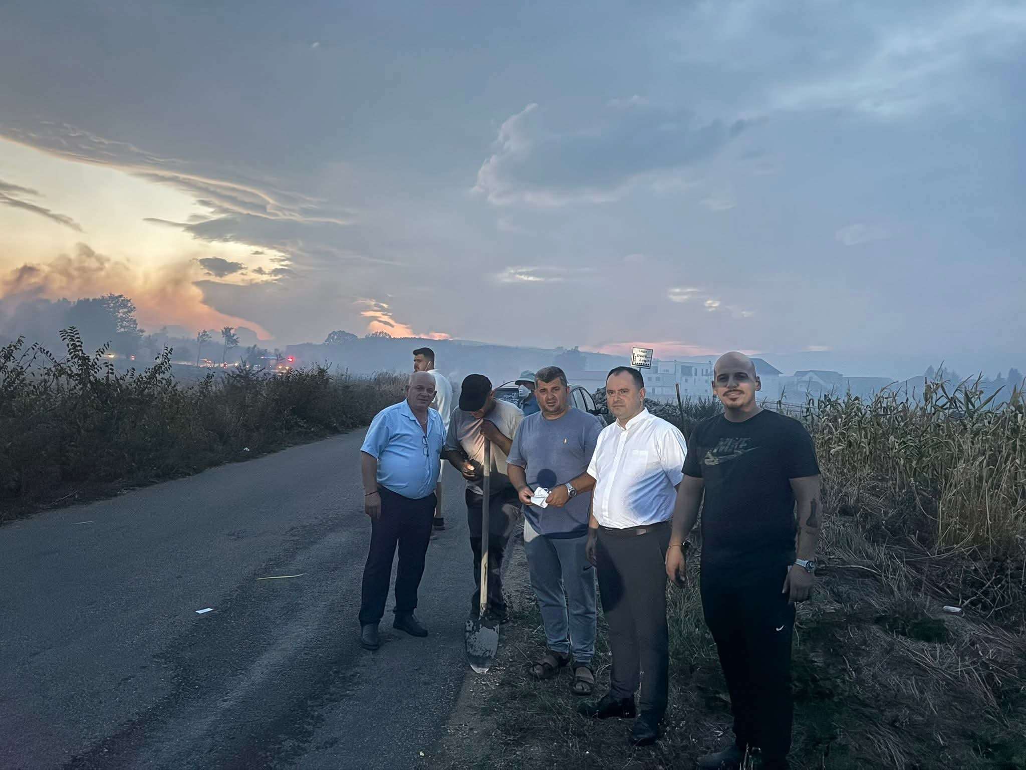 Prifti Jeton Thaçi bashkë me banorët në terren për shuarjen e zjarrit në Klinë