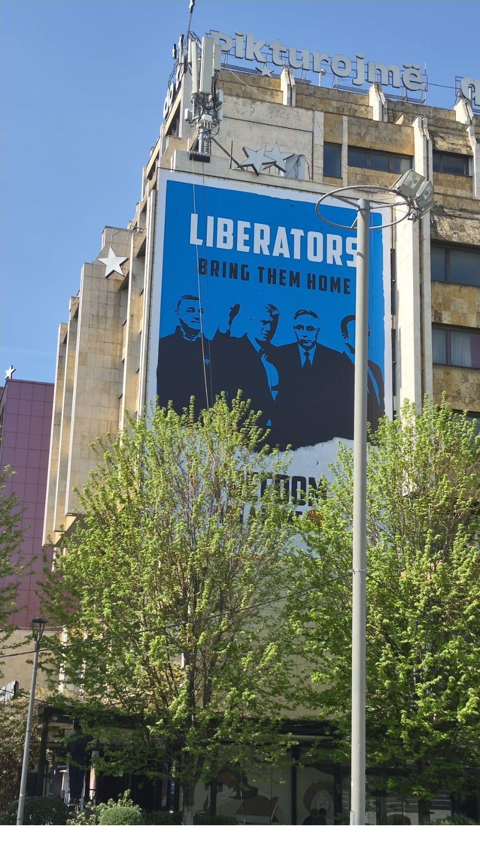 Një baner i madh e mbështetës për krerët e UÇK-së në Hagë është shfaqur sot në qendër të Prishtinës.