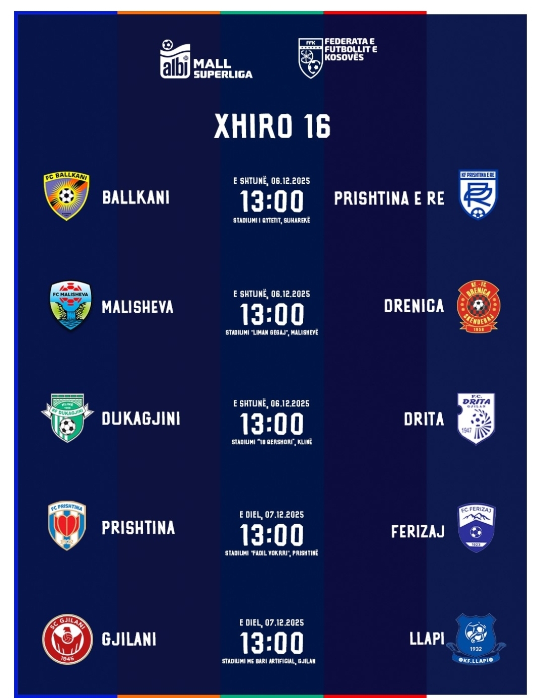 Sot nis java e 16-të e Superligës së Kosovës në futboll.