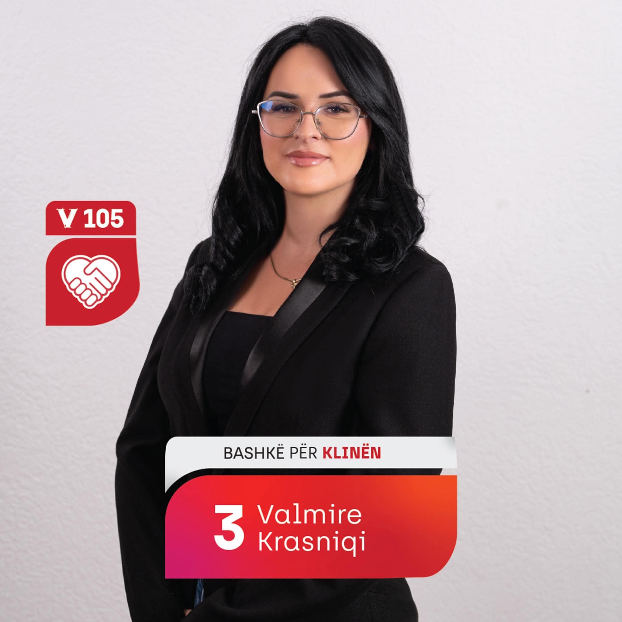 Me përkushtim, ndershmëri dhe vizion të qartë për të ardhmen, Valmire Krasniqi kandidon për asambliste komunale nga radhët e Lëvizjes Vetëvendosje (105) duke mbajtur numrin 3 në fletëvotim.